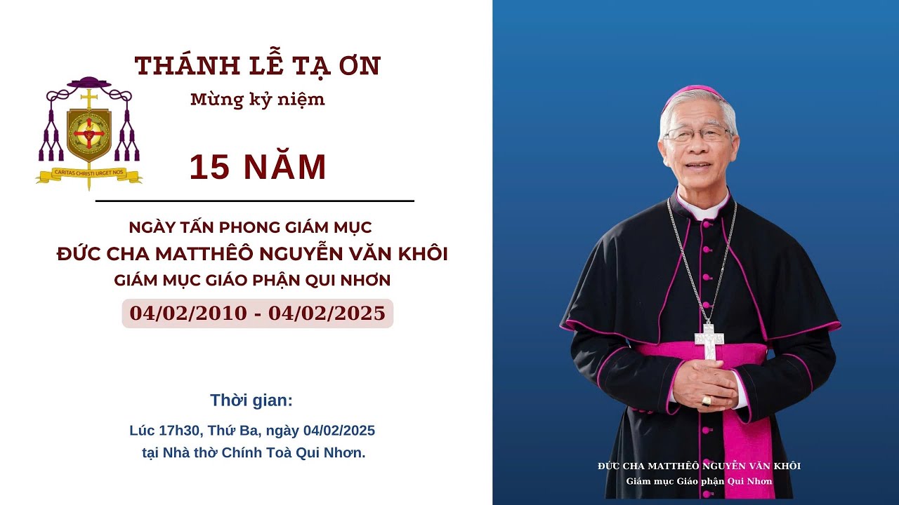WGPQN (04/05/2025) - Vào lúc 17h30 thứ Ba ngày 04/02/2025, tại nhà thờ Chính Toà Qui Nhơn, diễn ra thánh lễ tạ ơn 15 năm hồng ân Giám mục của Đức cha Matthêô Nguyễn Văn Khôi, để kỷ niệm ngày … Continue reading