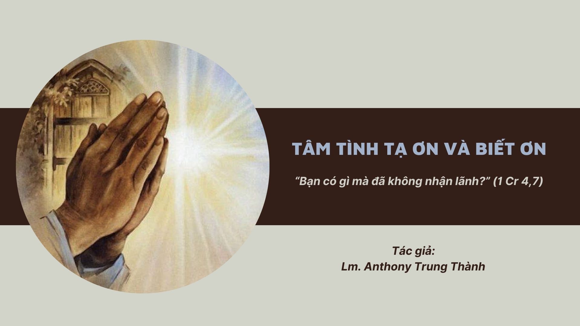 Tâm tình tạ ơn và biết ơn - “Bạn có gì mà đã không nhận lãnh?” (1 Cr 4,7)
