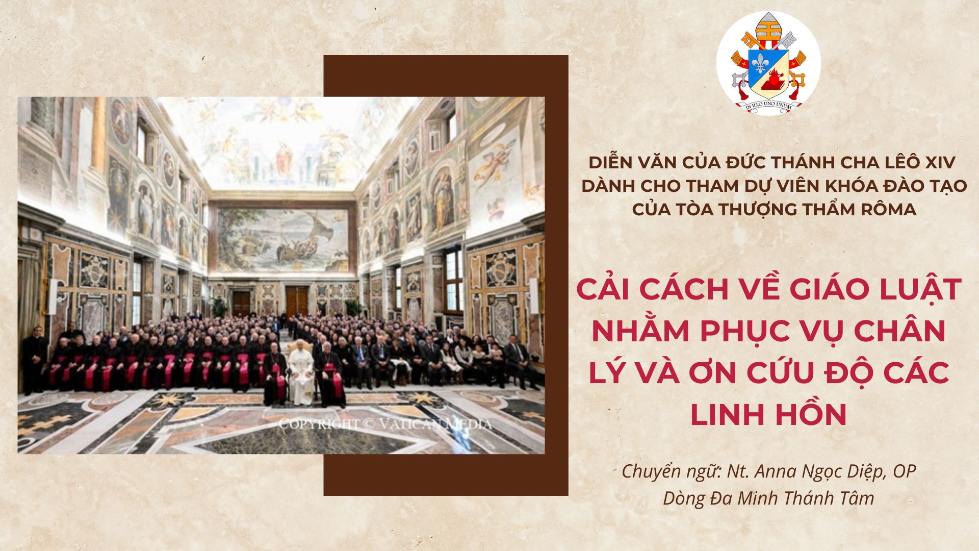 Hội Đồng Giám Mục Việt Nam 4 weeks agoWHĐ (24/11/2025) – Sáng 21/11/2025, tại Điện Tông tòa Vatican, Đức Thánh cha Lêô XIV đã tiếp kiến các tham dự viên của khóa đào tạo Pháp lý–Mục vụ do Tòa Thượng thẩm Rôma tổ chức. Sau đây là toàn văn Việt ngữ bài Diễn văn của Đức Thánh Cha: