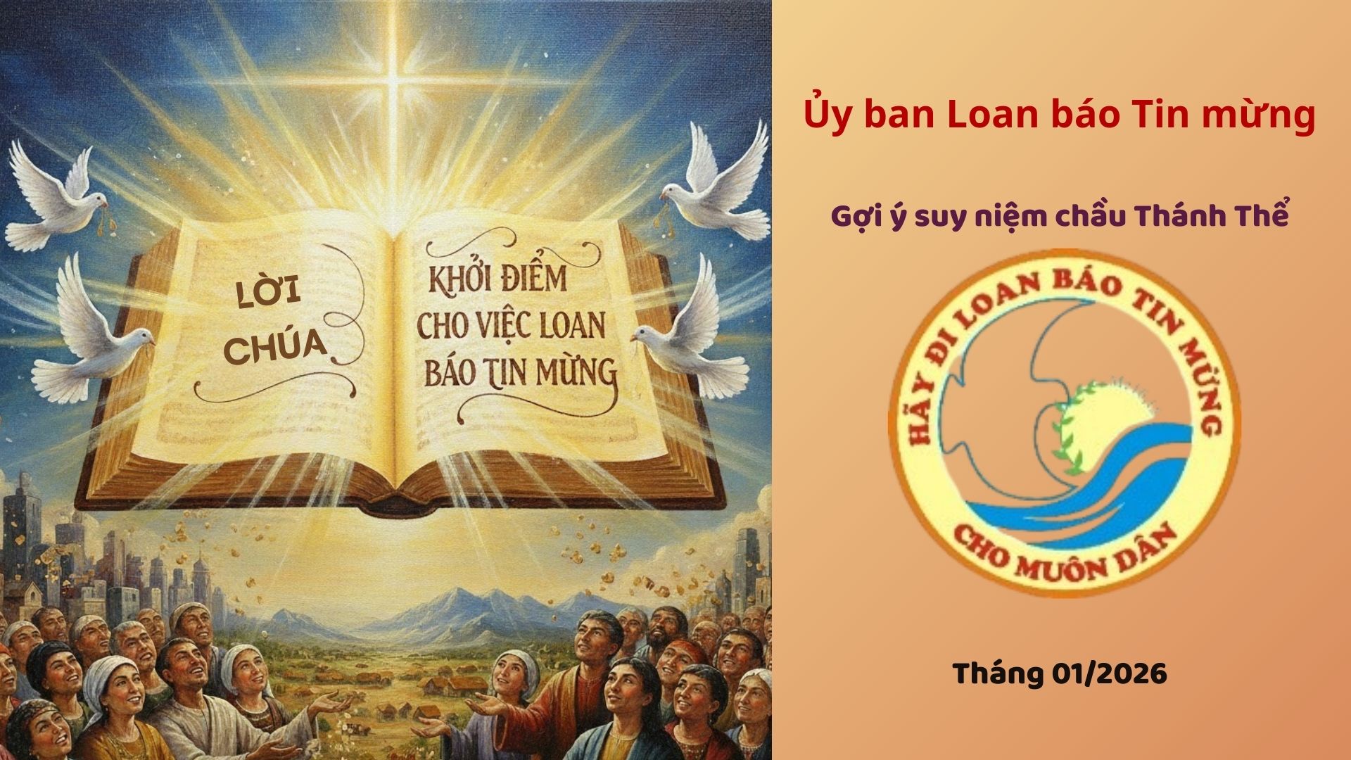 WHĐ (16/12/2025) - Ủy ban Loan báo Tin mừng gợi ý bài suy niệm chầu Thánh Thể sau đây để cầu nguyện cho việc truyền giáo trong tháng 01/2026.