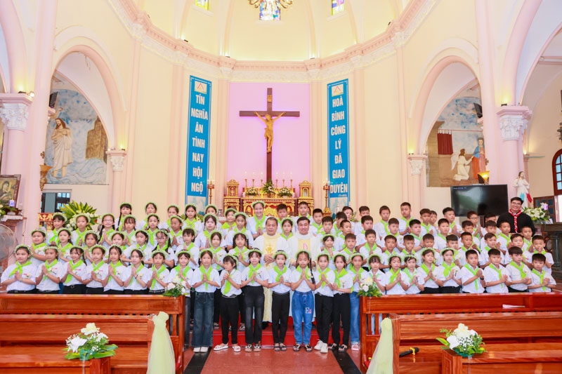 84 em Thiếu nhi giáo xứ Mưỡu Giáp lãnh nhận Hồng ân rước Chúa lần đầu