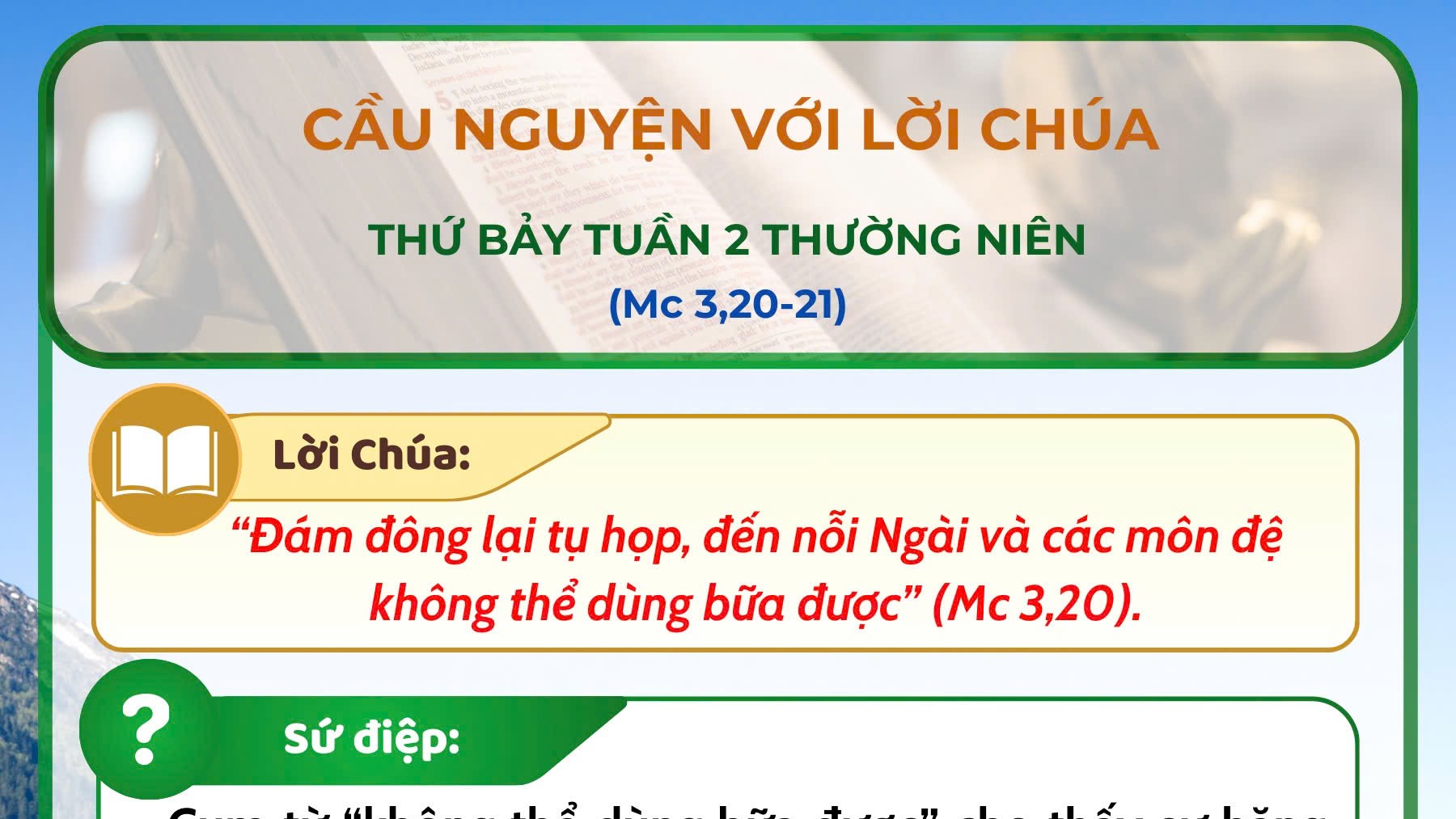 TGP Sài Gòn – Tp.HCM 5 weeks agoCầu nguyện với Lời Chúa: thứ Bảy tuần 2 thường niên năm A