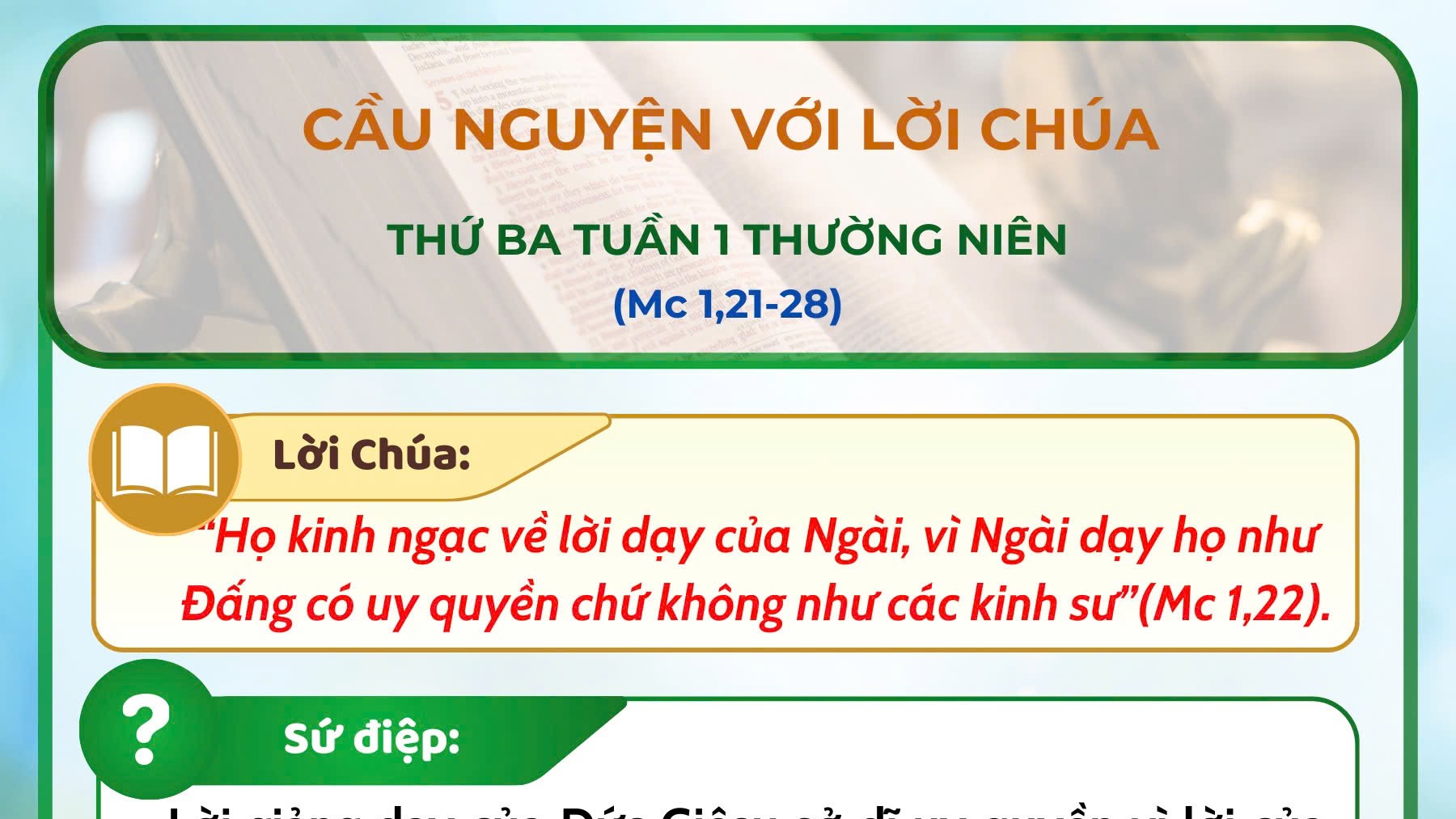 TGP Sài Gòn – Tp.HCM 7 weeks agoCầu nguyện với Lời Chúa: thứ Ba tuần 1 thường niên năm A