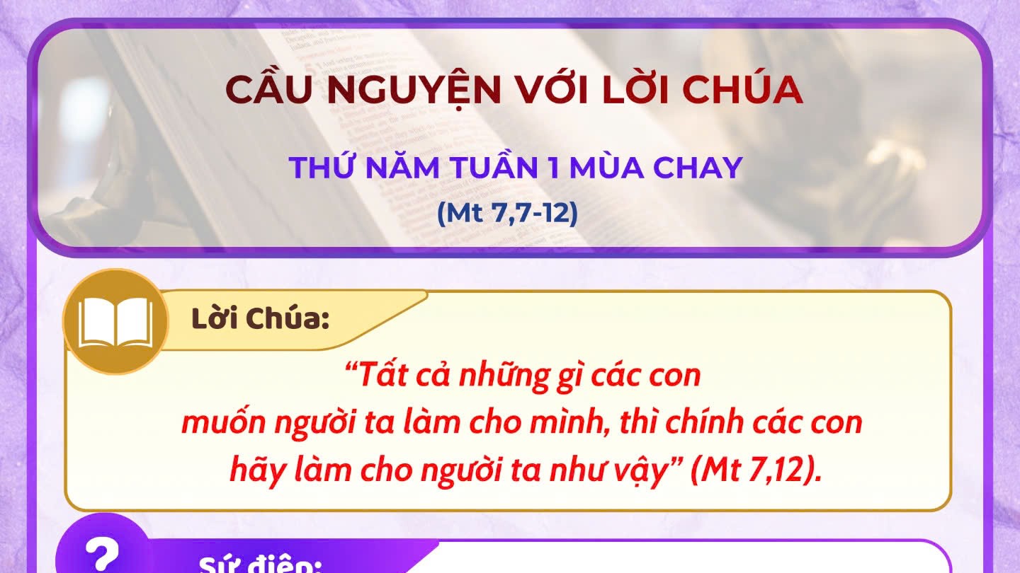 TGP Sài Gòn – Tp.HCM 5 days agoCầu nguyện với Lời Chúa: thứ Năm 1 mùa chay năm A
