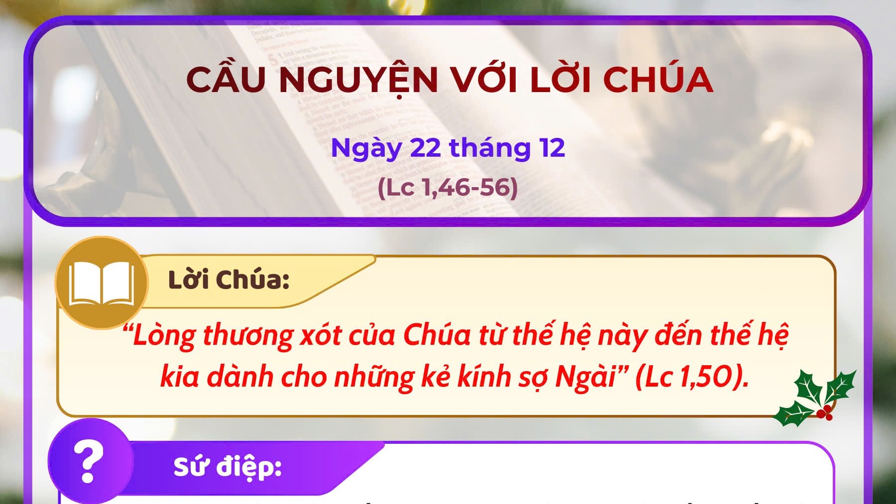 TGP Sài Gòn – Tp.HCM 2 months agoCầu nguyện với Lời Chúa: Ngày 22 tháng 12
